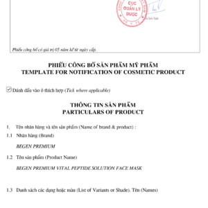 Begen Premium Vital Peptide Solution Face Mask – Mặt nạ peptide siêu dưỡng và phục hồi, trẻ hóa, trắng sáng da công nghệ dịch chiết tế bào gốc